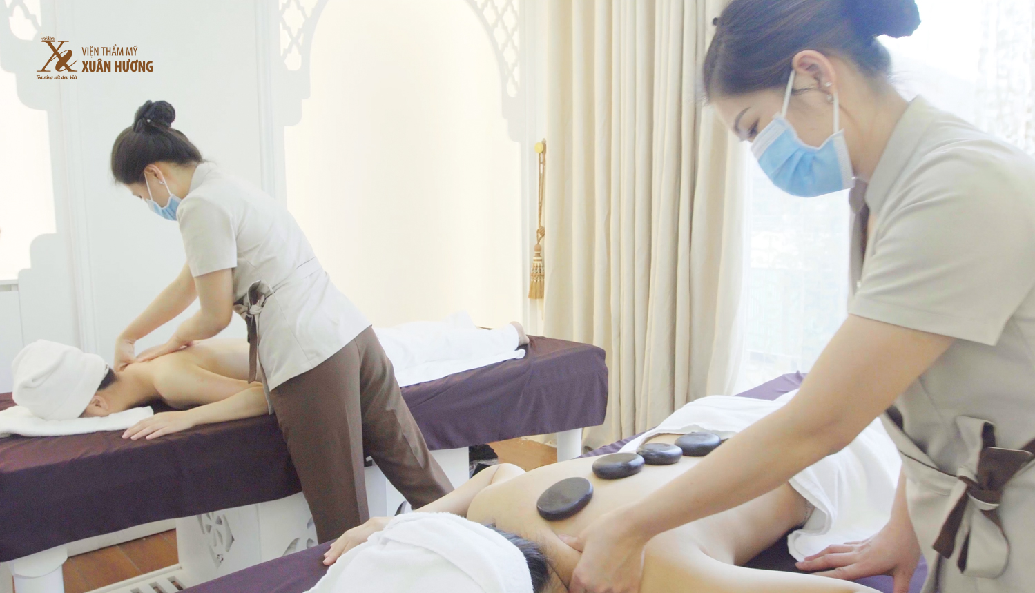 - HOT STONE BODY MASSAGE: Là phương pháp sử dụng các loại đá có kích thước khác nhau để dẫn truyền hơi nóng, sức nóng vào một số nơi trên cơ thể. Vận dụng kỹ thuật nhiệt trị liệu để đem đến sự thư giãn và thải độc nâng cao sức khỏe và năng lượng.